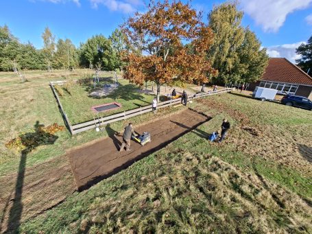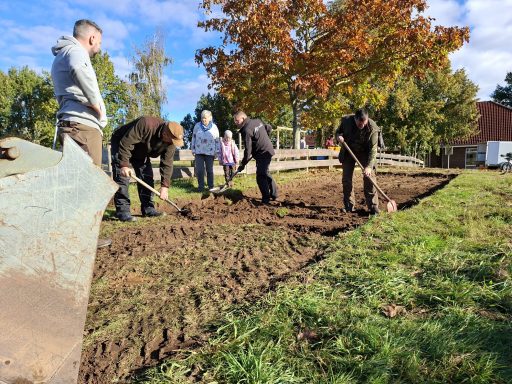 Es musste Boden ausgehoben und eine stabile Randbefestigung erstellt werden. Weiter wurde neu verfüllt und verdichtet. Neben professionellen Maschinen und Werkzeugen waren auch tatkräftige Helferinnen und Helfer notwendig. Ebenfalls ein Dank an alle, die dafür gesorgt haben, dass immer genug zu trinken und zu essen bereit stand.