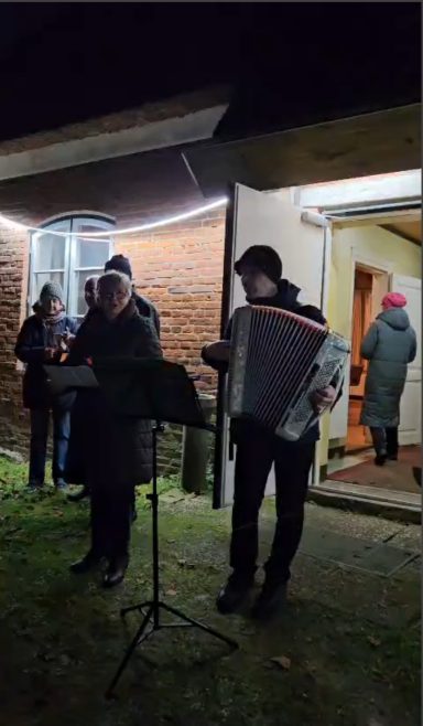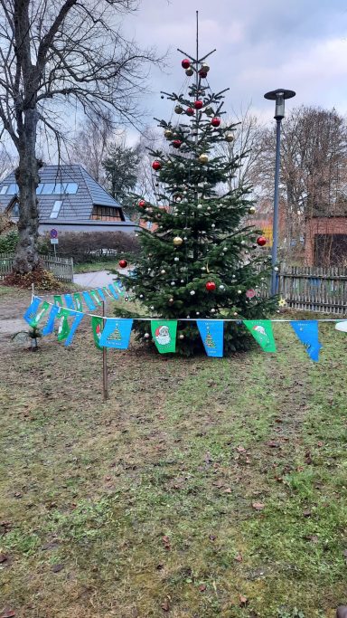 Silke, mit ihren vorgetragenen Weihnachtsgeschichten und Sven mit seiner wunderbaren musikalischen Begleitung am Akkordeon brachten die vielen Besucher*innen in eine vorweihnachtliche Stimmung. Ein vorher bunt geschmückter und illuminierter Weihnachtsbaum vor der historischen" Alten Schule" war das I-Tüpfelchen einer rundum stimmungsvollen Aktion. Gegen eine kleine Spende konnte man sich am feinen Buffet mit Glühwein und herzhaften sowie süßen Leckereien bedienen. Wer lieber eine Grillwurst mochte, kam auch diesmal nicht zu kurz. Allen die mitgeholfen haben, die gespendet-auch Speisen- oder auch einfach " nur" dabei waren- ein herzliches " Dankeschön"