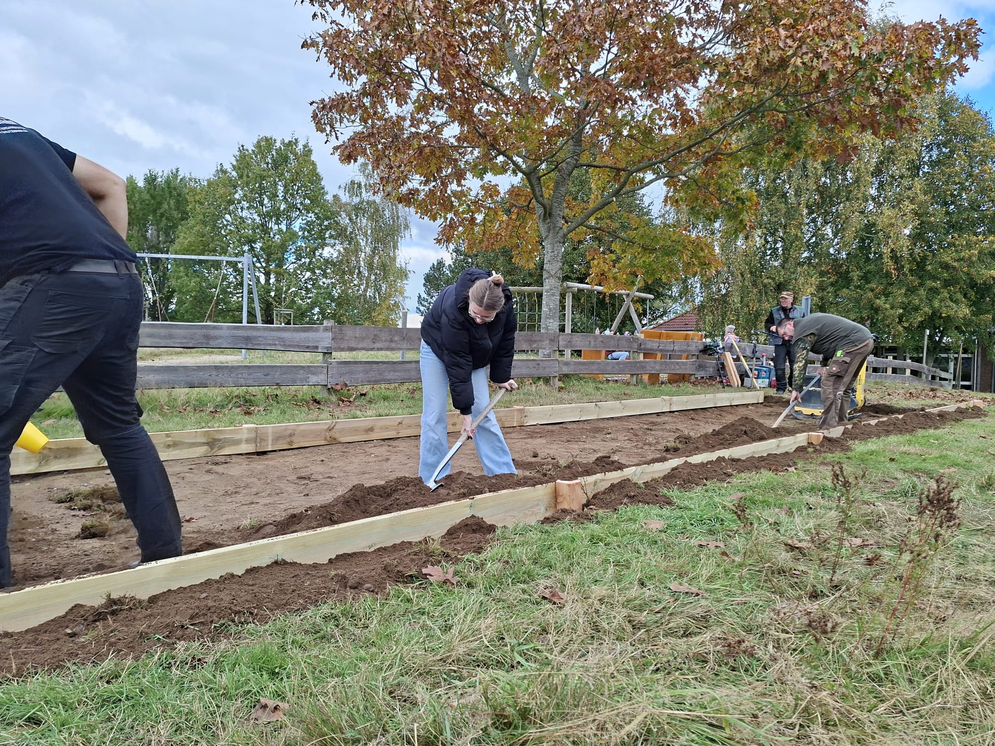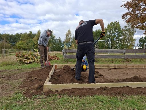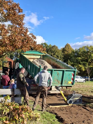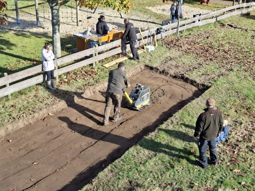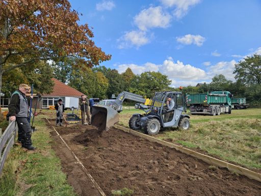 Es musste Boden ausgehoben und eine stabile Randbefestigung erstellt werden. Weiter wurde neu verfüllt und verdichtet. Neben professionellen Maschinen und Werkzeugen waren auch tatkräftige Helferinnen und Helfer notwendig. Ebenfalls ein Dank an alle, die dafür gesorgt haben, dass immer genug zu trinken und zu essen bereit stand.