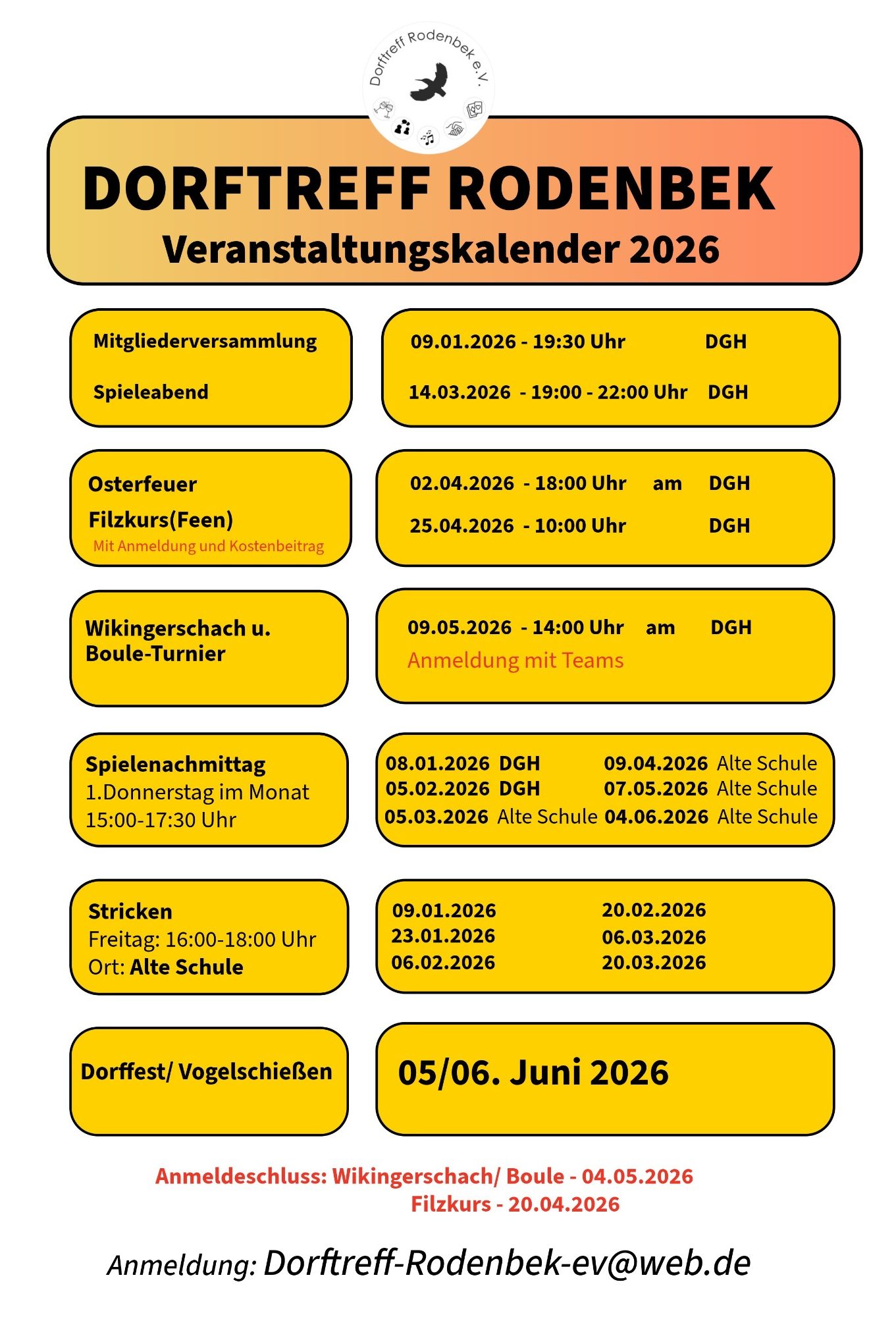 Anmeldungen per E-Mail an: DORFTREFF-RODENBEK-EV@WEB.DE