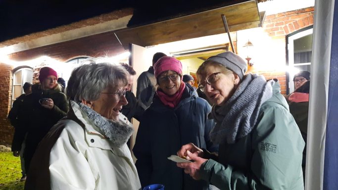 Silke, mit ihren vorgetragenen Weihnachtsgeschichten und Sven mit seiner wunderbaren musikalischen Begleitung am Akkordeon brachten die vielen Besucher*innen in eine vorweihnachtliche Stimmung. Ein vorher bunt geschmückter und illuminierter Weihnachtsbaum vor der historischen" Alten Schule" war das I-Tüpfelchen einer rundum stimmungsvollen Aktion. Gegen eine kleine Spende konnte man sich am feinen Buffet mit Glühwein und herzhaften sowie süßen Leckereien bedienen. Wer lieber eine Grillwurst mochte, kam auch diesmal nicht zu kurz. Allen die mitgeholfen haben, die gespendet-auch Speisen- oder auch einfach " nur" dabei waren- ein herzliches " Dankeschön"