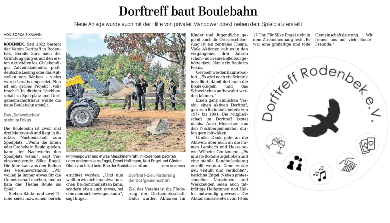 In direkter Nachbarschaft zum Spielplatz und Dorfgemeinschaftshaus befindet sich nun unsere neue Boulebahn.